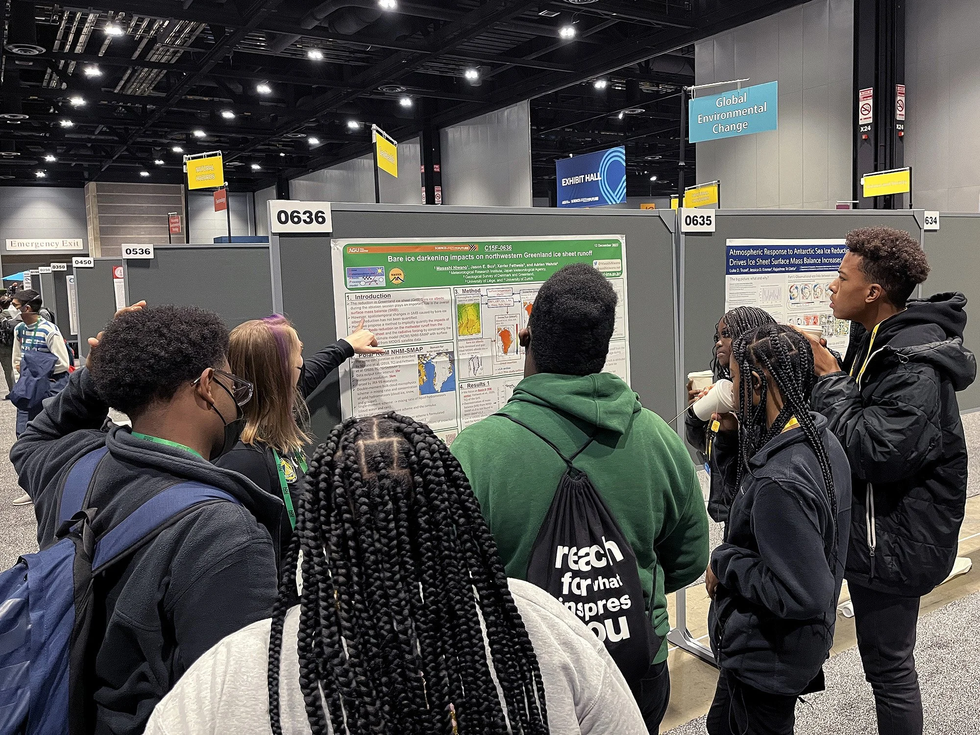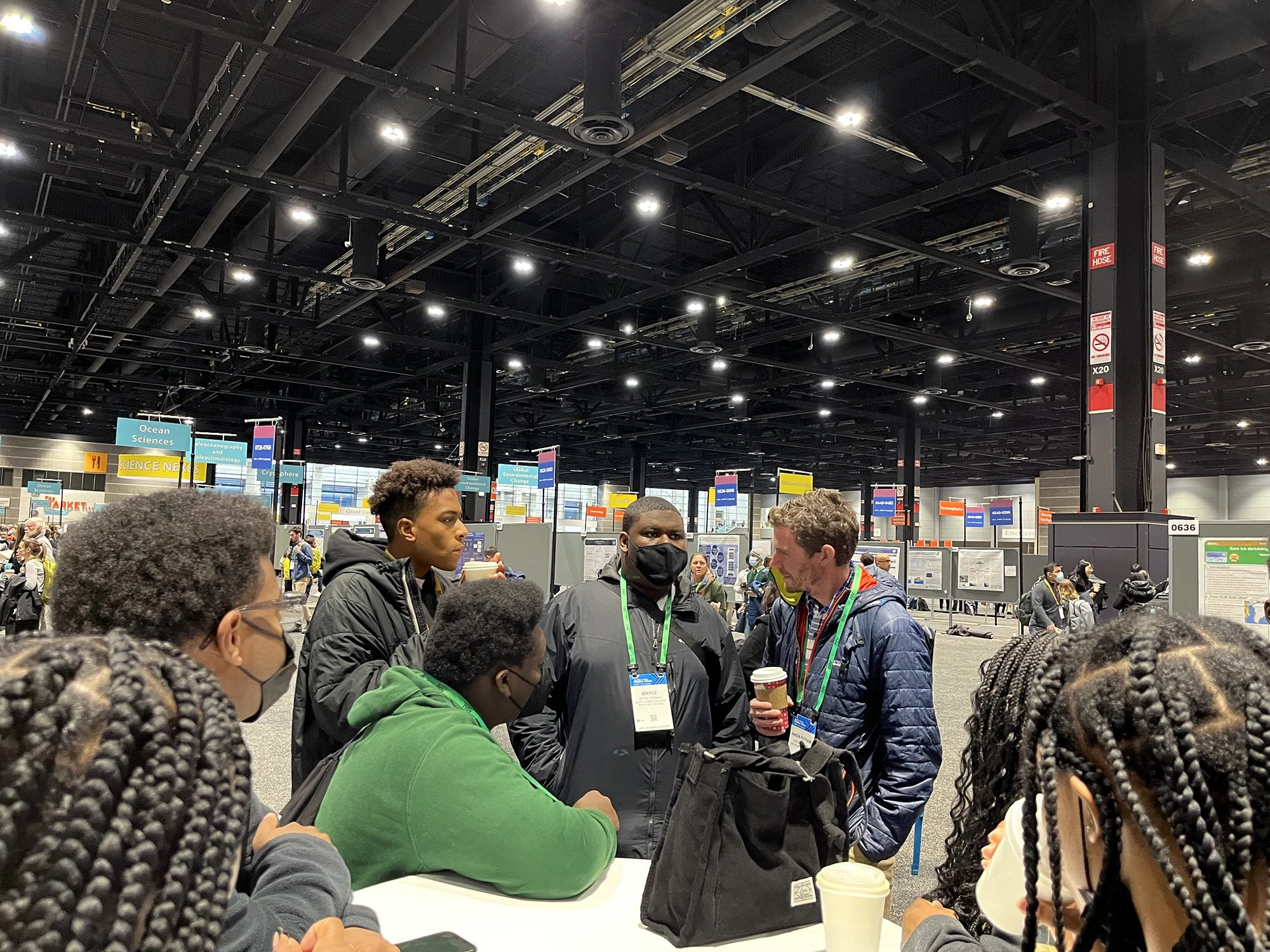 The 2022 American Geophysical Union (AGU) Fall Meeting was held in Chicago. Ten teens visited the conference, perusing scientific posters and meeting with UMaine professor and climate scientist Aaron Putnam. Teens Take On Climate (TTOC) attended a rousing keynote delivered by Chicago historian Sherman “Dilla” Thomas.